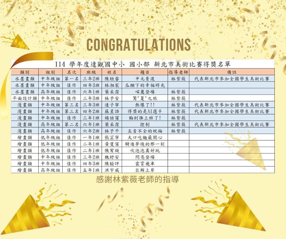 【國小部】賀!本校學生參加新北市114學年度學生美術比賽(東區)榮獲佳績!