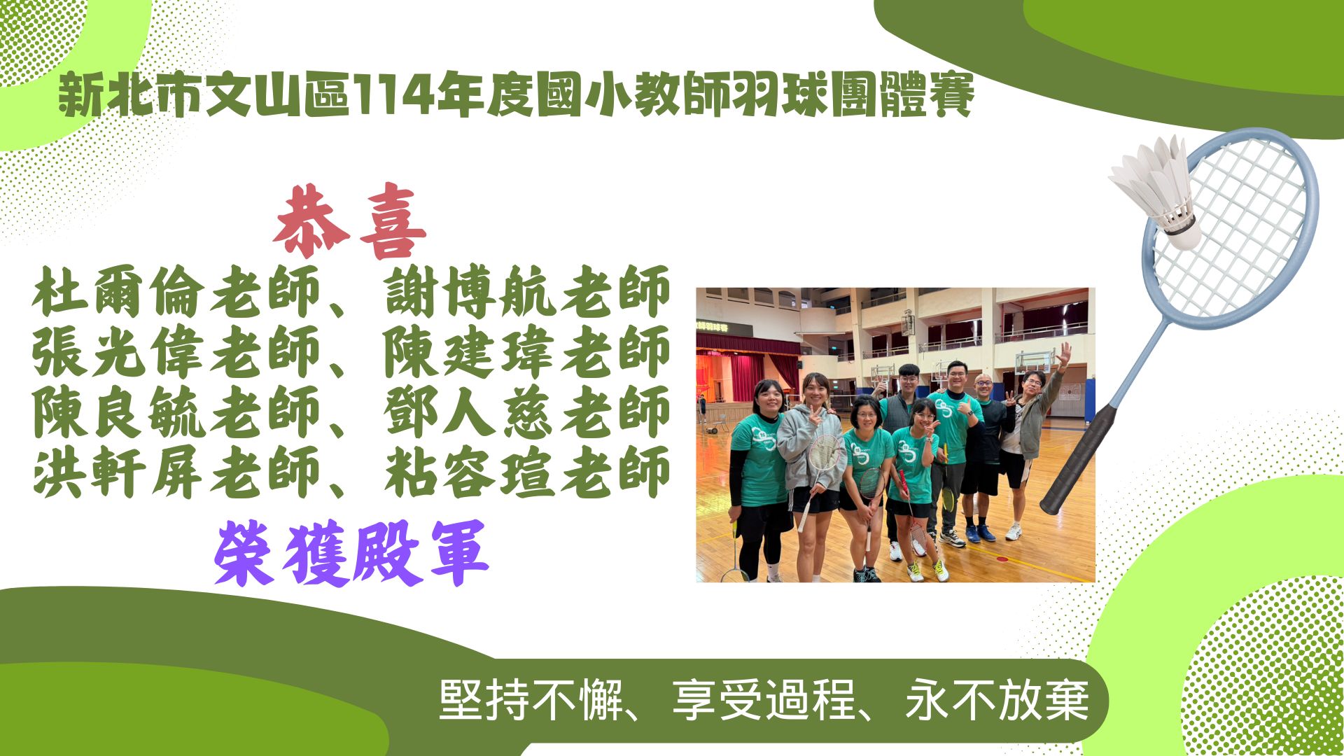 【全校】本校教職員參加新北市114年文山區教師羽球比賽榮獲佳績